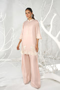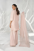 Pure Raw-Silk Shalwar Kameez in beautiful Blush color. Featuring intricate handwork with Pearls, Sequin and Zardose in ethereal white. Adorned with Hand-made 3D organza flowers for a mesmerizing texture. Comes with hand embroidered Farshi Shalwar. Complete the look with Pure Organza embroidered matching Dupatta.