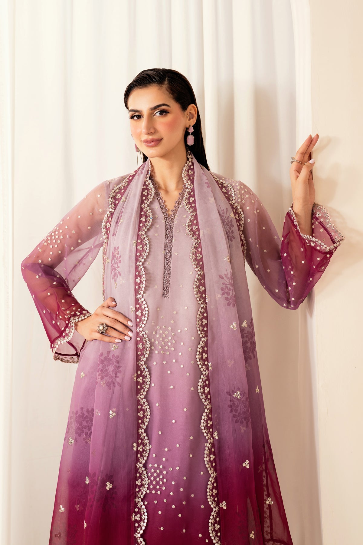 Embroidered Shaded Chiffon Shirt