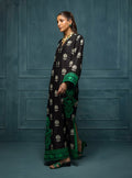 A true work of art, this raw silk kaftan is designed for the woman who seeks both luxury and ease. Shyna features a rich black base brought to life by vibrant teal embroidery, with delicate floral patterns flowing down the front. The true showstopper is the beautifully detailed floral motif that graces the back, a testament to exquisite craftsmanship.