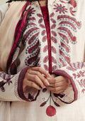 An elegant ivory shirt paired with a printed trouser and finished with a warm biscotti dupatta, bringing subtle charm and refined ease. Digital Printed Chiffon Dupatta 2.5 Mtrs Digital Printed Cambric Shirt 3 Mtrs Digital Printed Cambric Trouser 2.4 Mtrs.