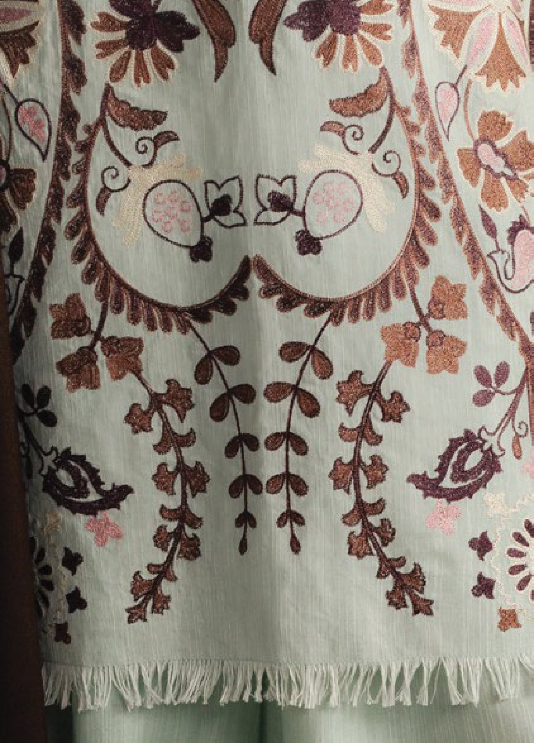 Embroidered Wool Peach Shawl Pallu 2 Pcs 0.66 Mtr