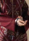 rich burnt umber karandi shirt and trouser paired with a deep blue and matching umber shawl, a bold yet grounded palette for winter days.