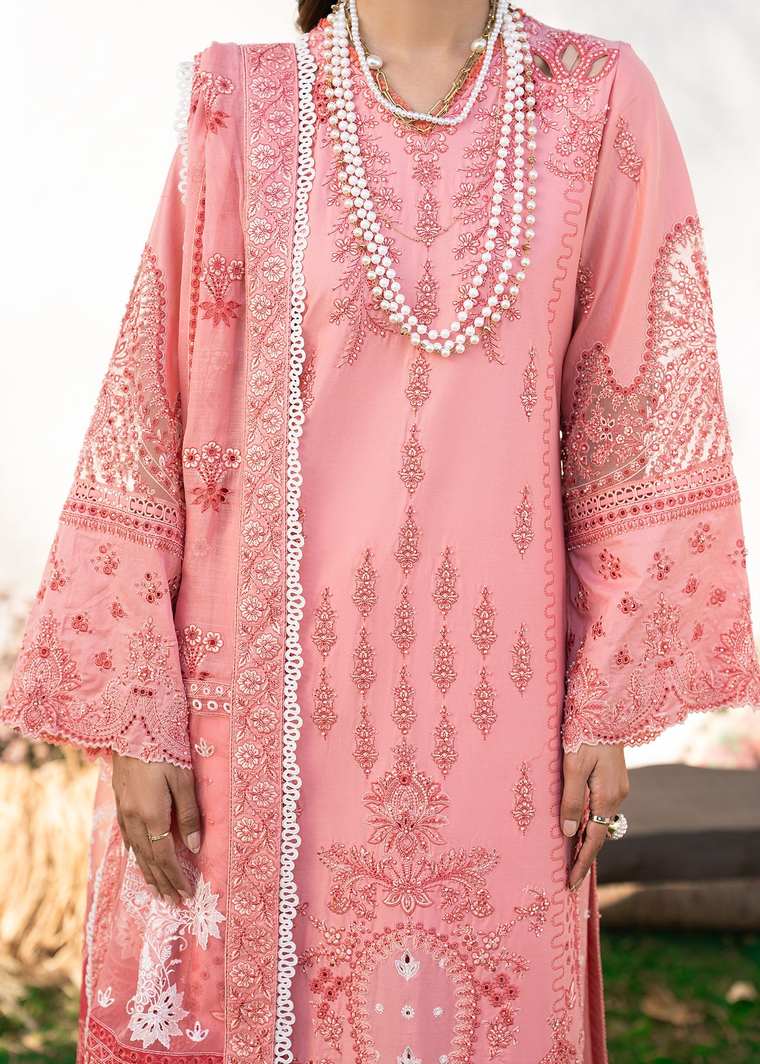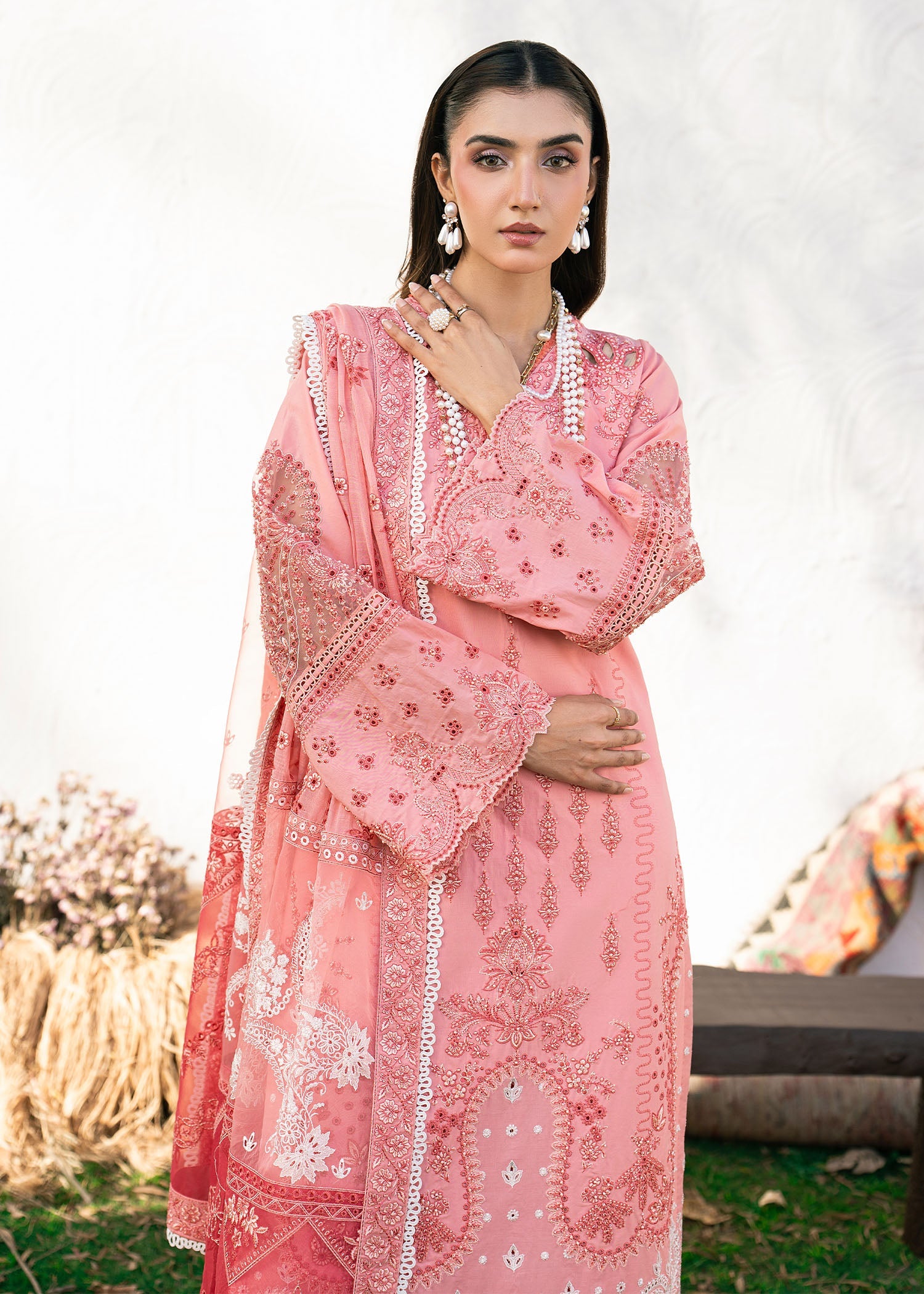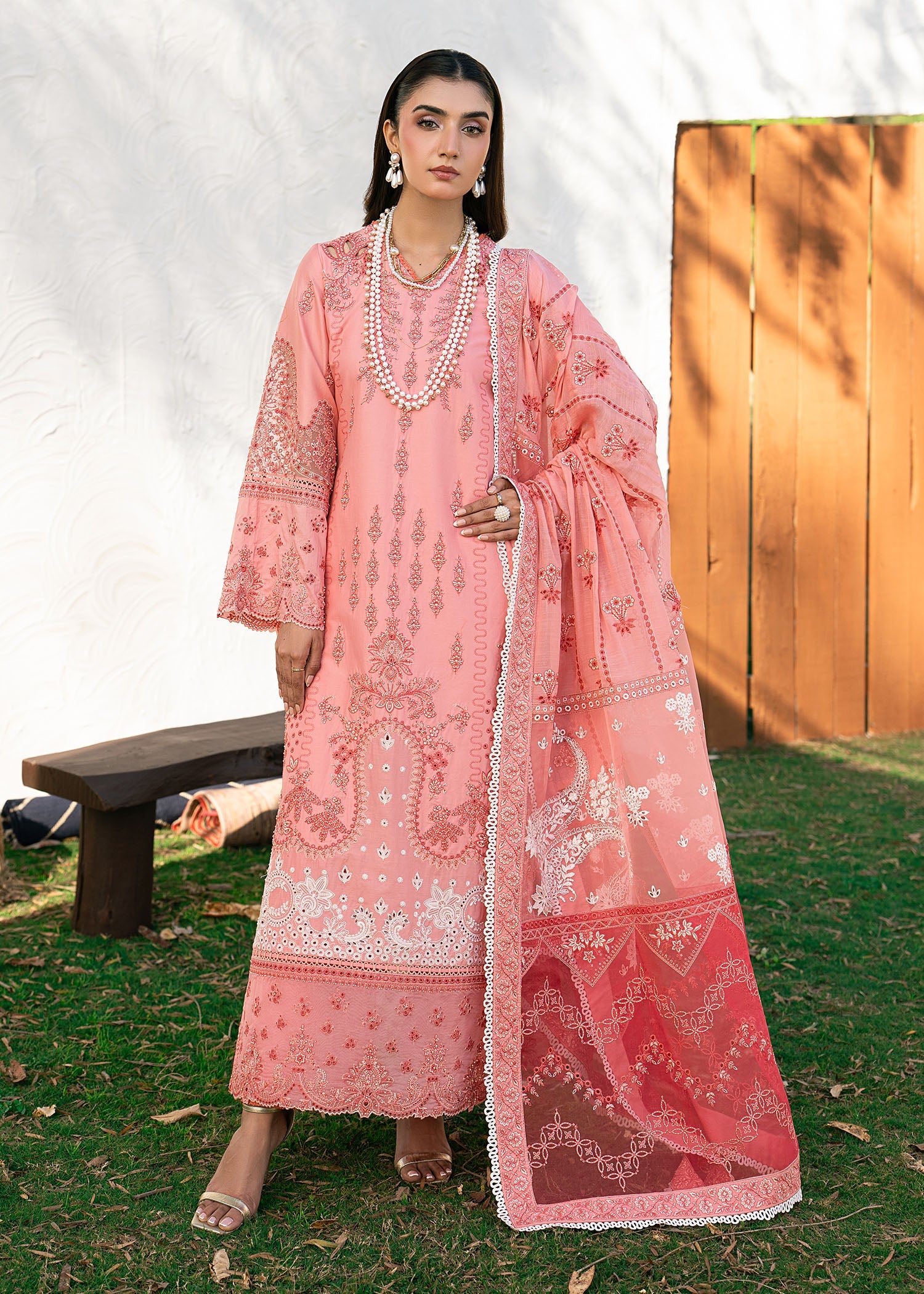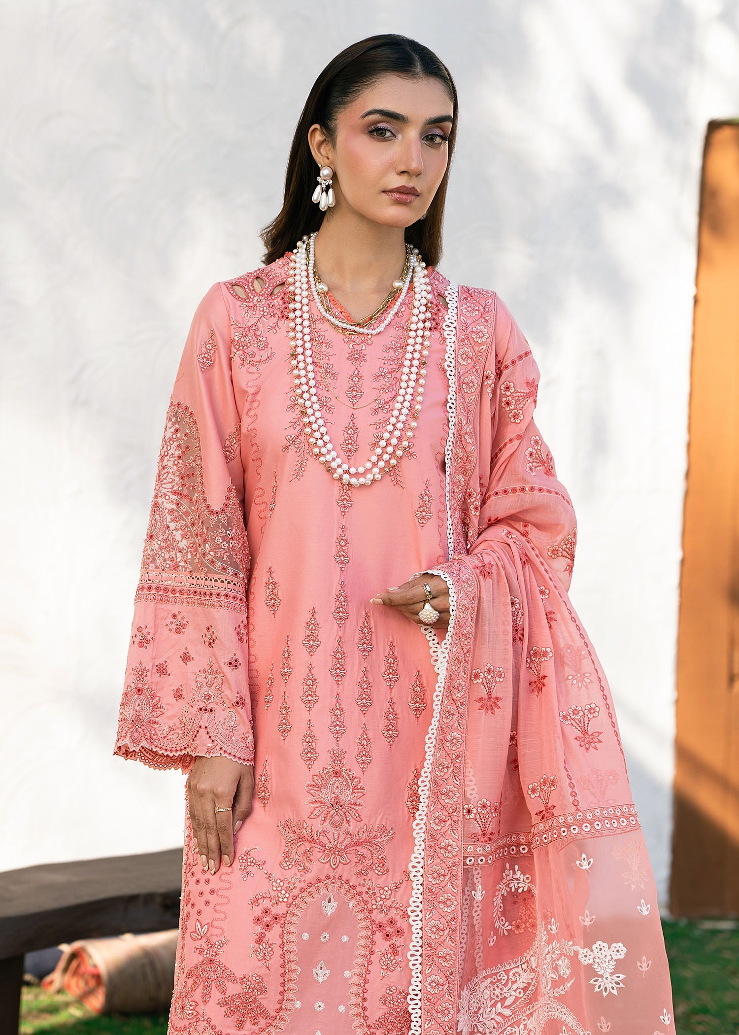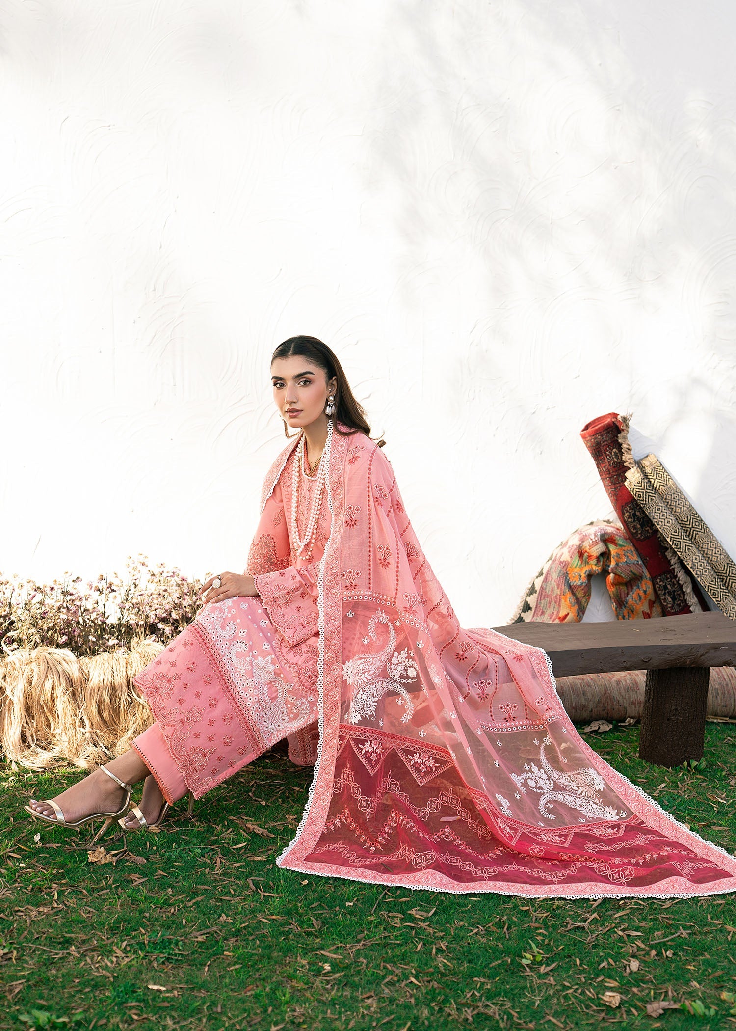 Presenting LYRA, a dreamy vision in pink. An embroidered lawn shirt with a beautifully detailed daman and sleeves, paired with classic lawn trousers and a flowing embroidered chiffon dupatta for timeless festive elegance. Perfectly crafted to make every festive moment feel graceful and unforgettable.