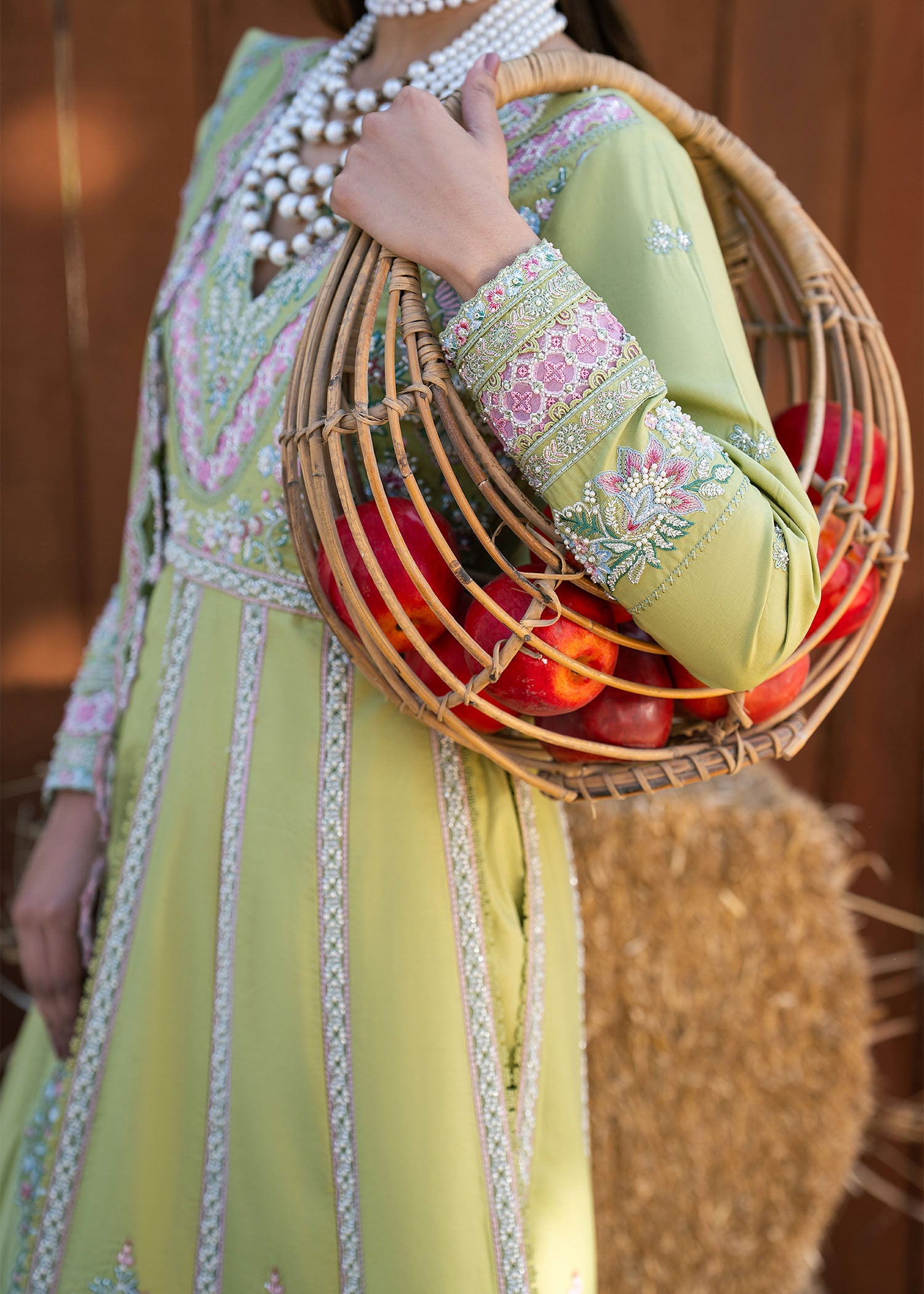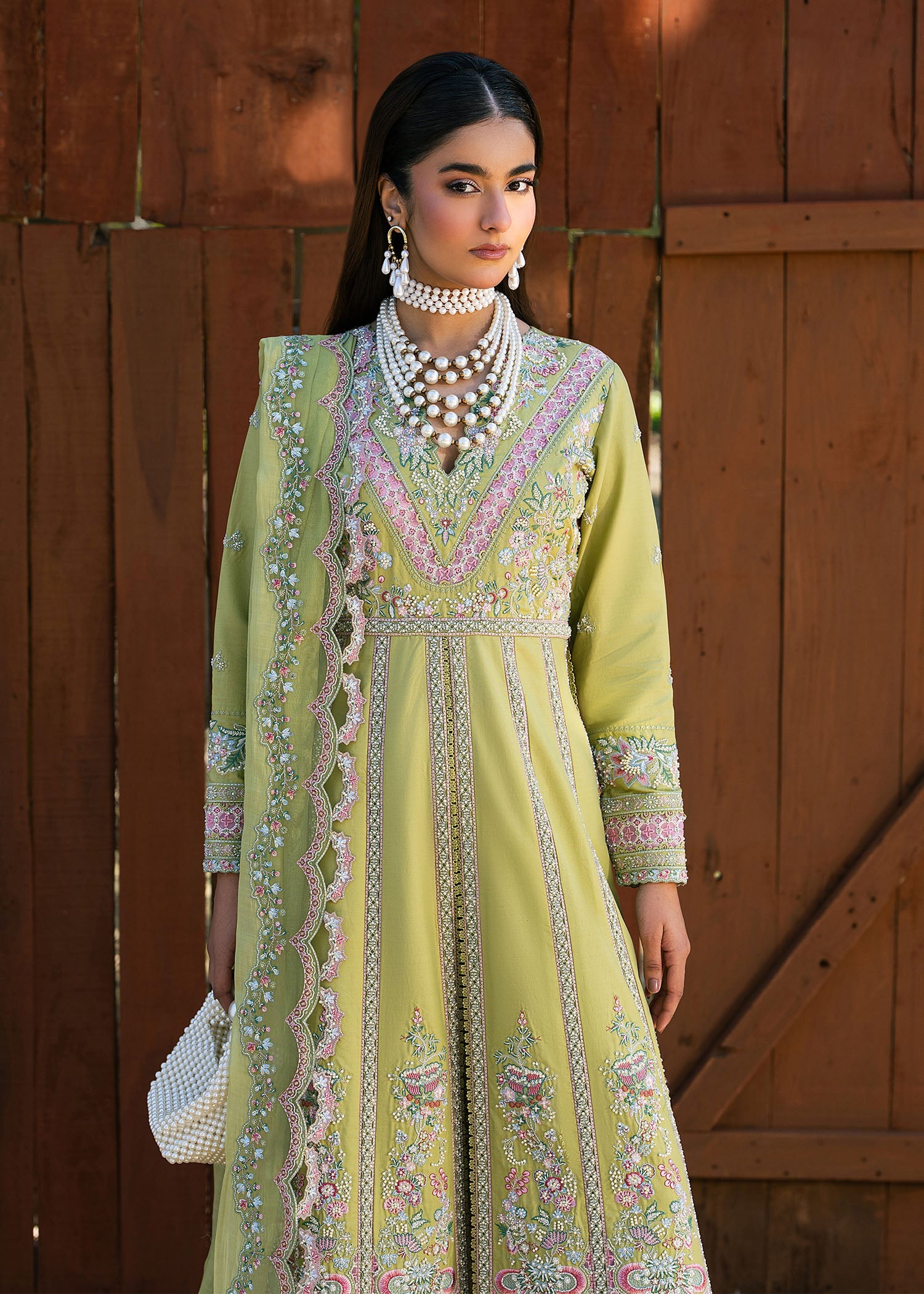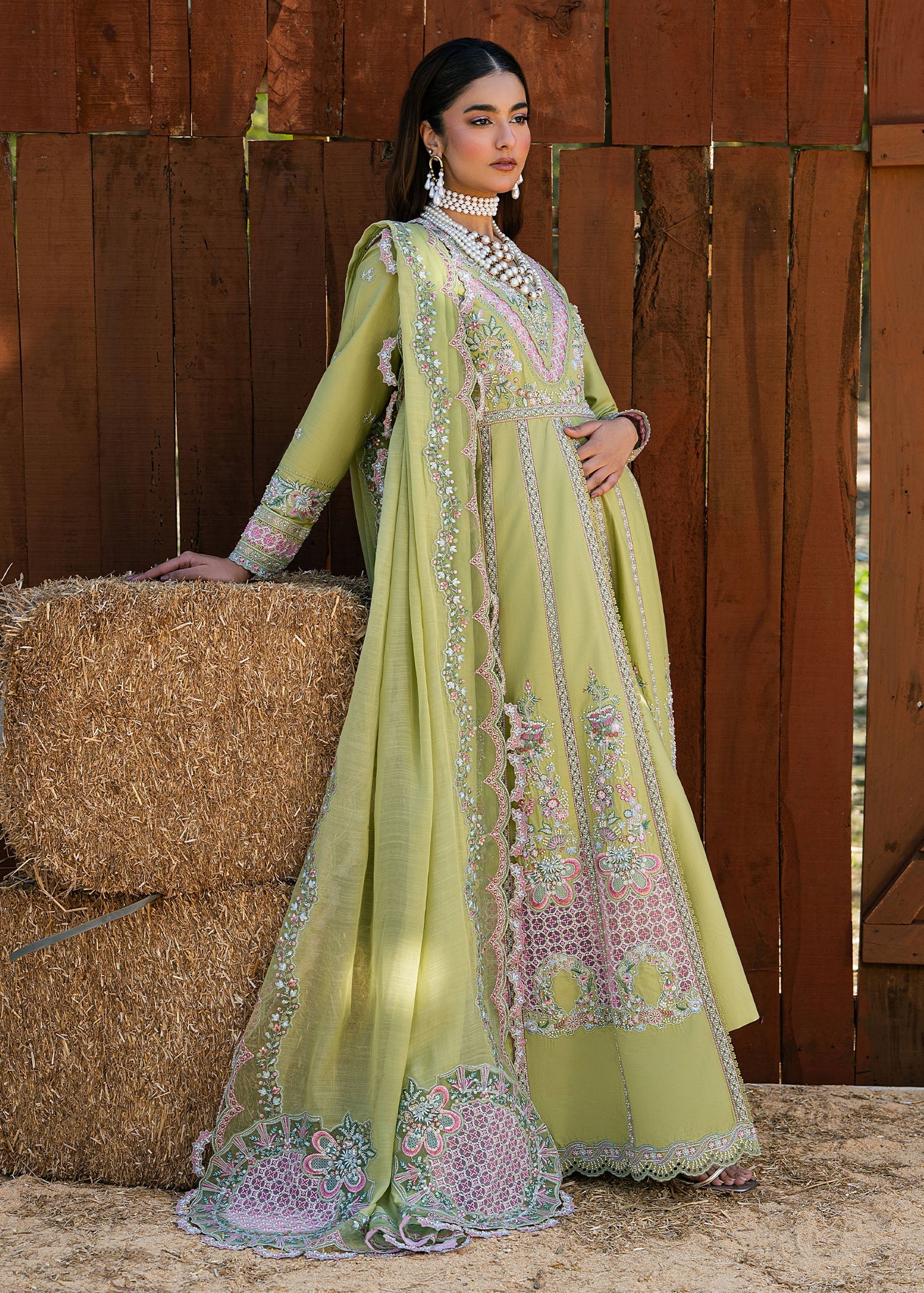 Step into refined grace with MOSS. An embroidered lawn pishwas featuring exquisite sleeve work and organza accents, complemented by classic lawn trousers and a flowing embroidered dupatta — crafted for statement celebrations.