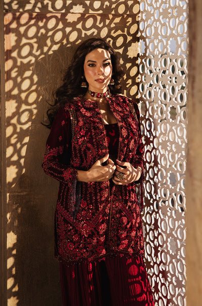 Embroidered Velvet Cutdana Work Shirt Front 2 Pcs