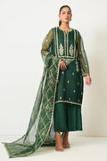 The Jade 3-piece embroidered suit is the perfect choice for those seeking a sophisticated blend of modernity and tradition. In a captivating green hue, this ensemble features delicate embroidery on the dupatta, sleeves, and front, creating an aura of elegance. The Rajjo Net fabric, combined with raw silk, enhances the luxurious appeal. With handwork embellishments and carefully embroidered borders, this suit promises to elevate your formal wardrobe, making you the epitome of grace and charm.